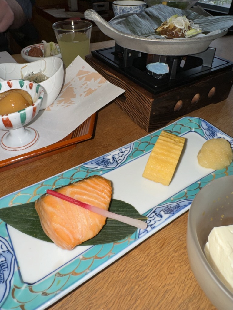 The morning began with another beautifully presented Japanese breakfast at Hidatei Hanaougi. Dishes included grilled salmon, tamagoyaki (rolled omelet), simmered vegetables, miso soup, rice, a crisp salad with corn and tomato, and pickled plum—rounded off with fruit and a creamy yogurt topped with berries. Served with hot green tea, it was equal parts nourishing and elegant.