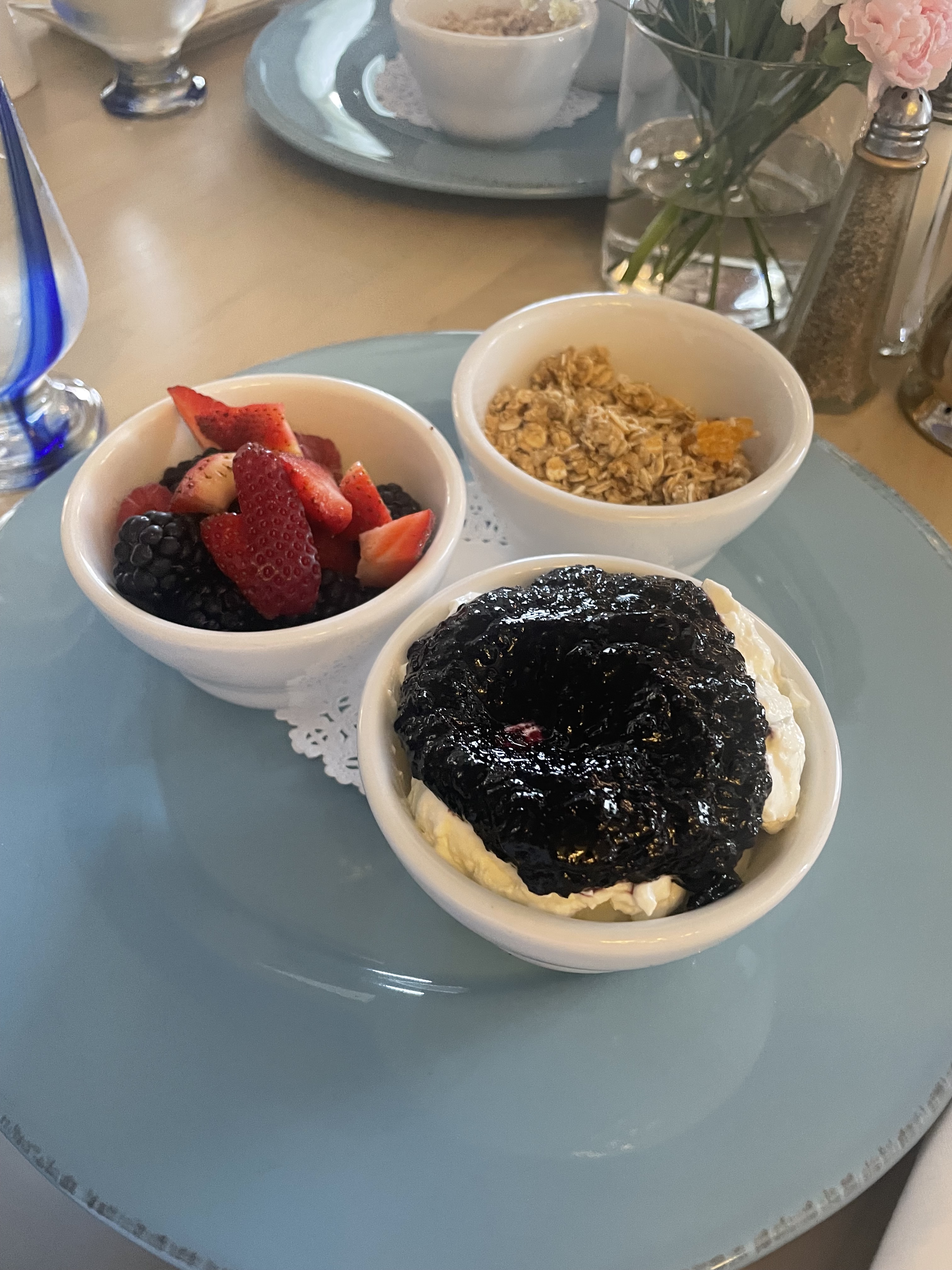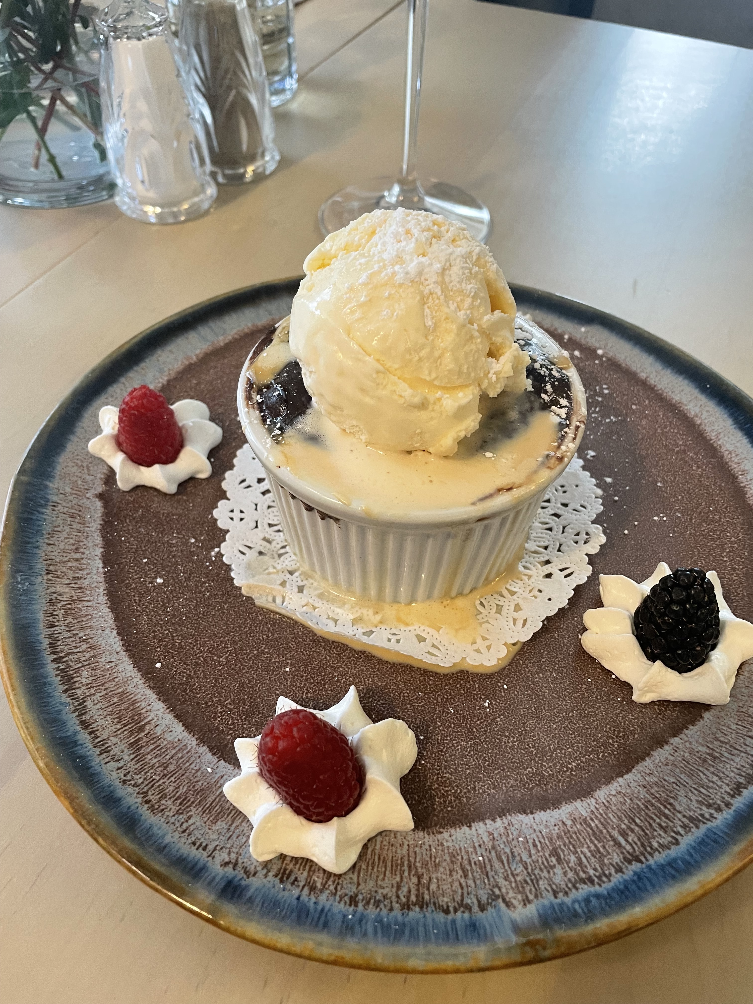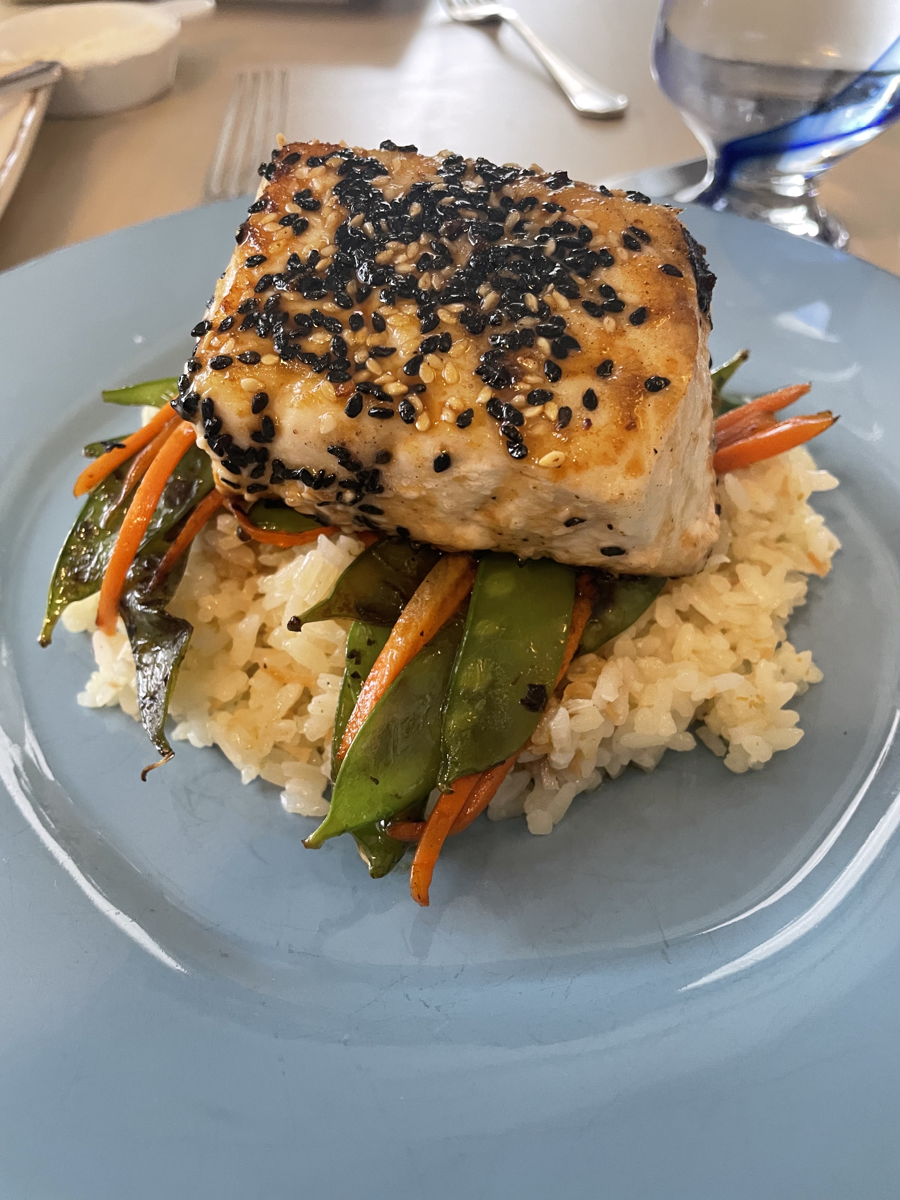 We had every meal there — breakfast, lunch, and dinner — and each was better than the last. The morning eggs Benedict with breakfast potatoes was perfection, while the grilled fish over jasmine rice and veggies at dinner felt light and flavorful. Dessert was a warm bread pudding topped with vanilla ice cream — the kind you think about for days afterward.