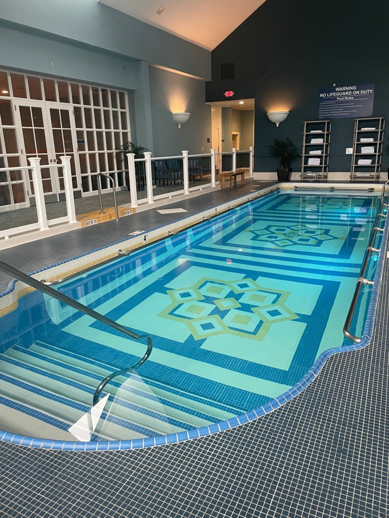 This trip, I went all in — a massage, body scrub, and facial. My mom and sister alternated between treatments, smoothies, and relaxation time. Between sessions, we wandered through the sauna, steam room, and whirlpool, stepped out for some fresh air on the patio, or joined a quick fitness class.